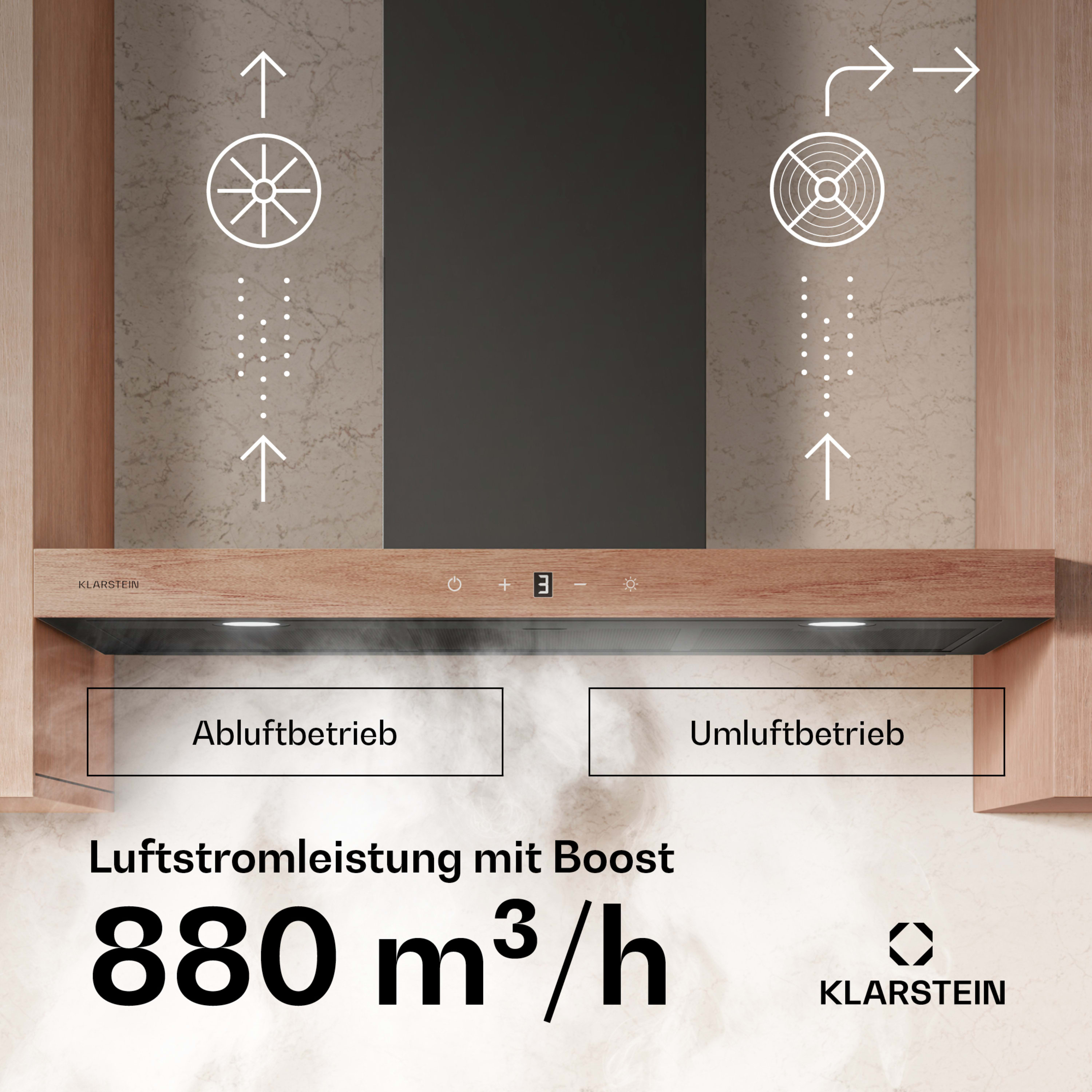 Leistungsstarker Boost-Modus: Entfernt selbst starken Dampf und Gerüche mit einer Luftleistung von bis zu 881,6 m³/h